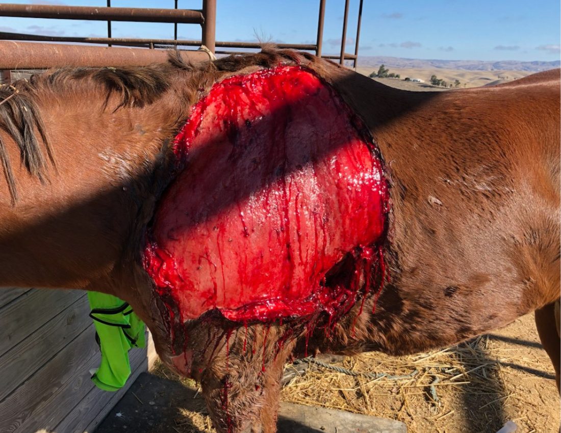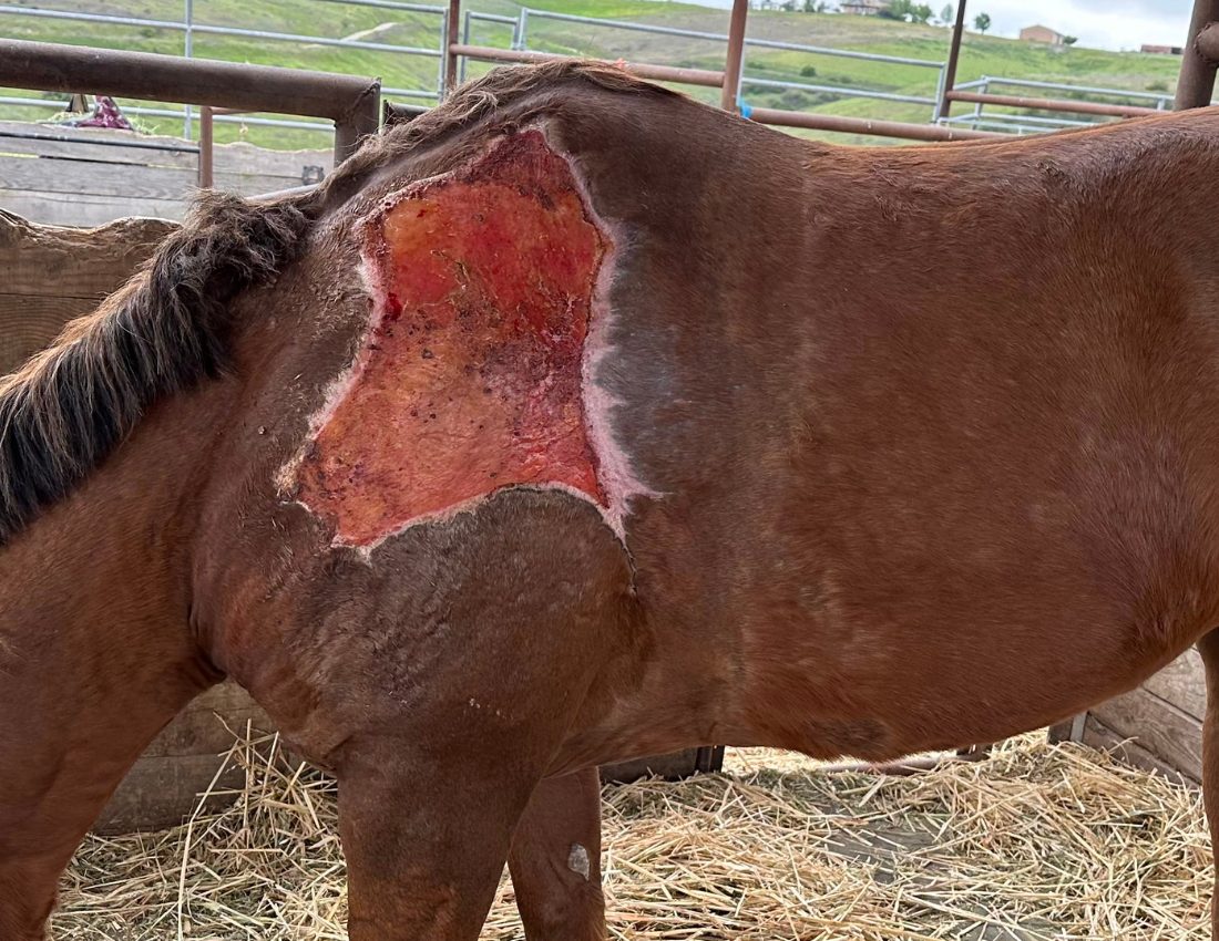 A terrible case of pigeon fever caused by a gram positive bacteria named Corynebacterium psuedotuberculosis with external abscess and cellulitis. This horse was treated with SilverVet Power Silver Gel and Power Silver Wash with remarkable results. Pigeon fever is contagious and now seen in more areas of the US than ever before. It is soil-borne and enters through skin wounds and injuries along with biting insects. Treat all wounds and injuries early with our Power Silver Gel and Power Silver Wash. Use Animal Aid to heal from within the body out.